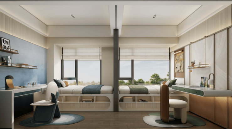 比如在约83㎡户型做到了3房2卫,这在龙华核心区是极为罕见的。对于年轻家庭来说,主卧套房设计让起居更从容,告别共用卫浴的尴尬,让首置客户一步到位享受改善盘的舒适体验。而且双孩家庭还能将双次卧可以灵活转换成一个大卧室,完美适应二胎家庭需求。