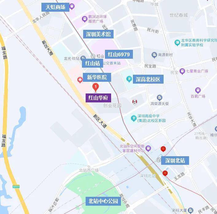 红山华府所在的红山板块作为龙华最醇熟的片区,配套非常优越的。