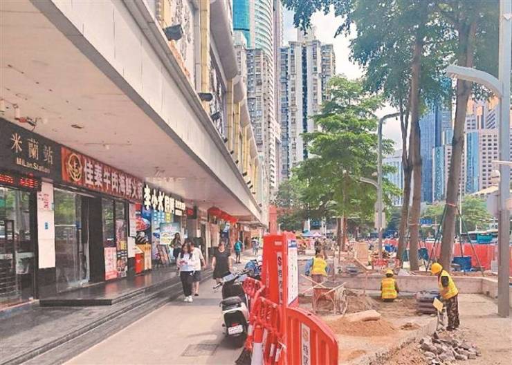 南湖街道办介绍,当前实施的人民南深港融合消费街区建设工程,是推进落实“人民南商圈复兴”的重要举措,南湖路金光华段在人民南项目施工范围内,日均人流量巨大、通行需求繁重。