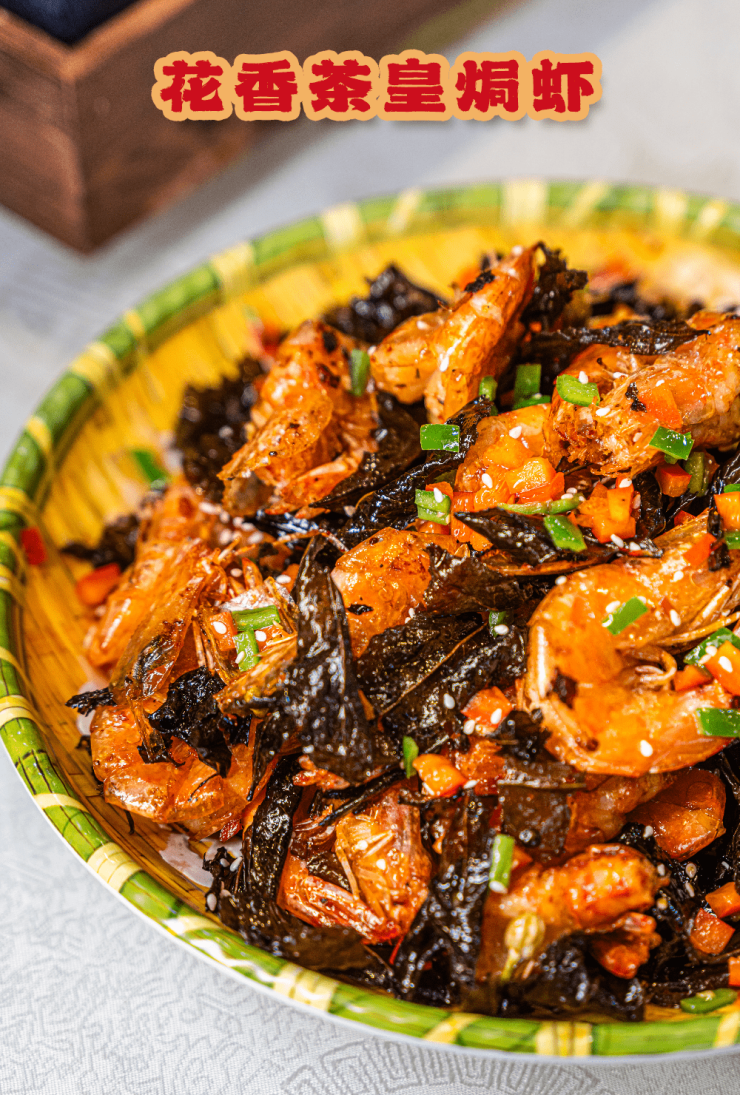 继龙井虾仁之后,我们终于遇到了另一道让人为之倾倒的茶叶与虾的跨界混搭,那就是根哥家的花香茶皇焗虾。让我们重新认识了美食的力量,它不仅仅是一道菜肴,更是一种将茶叶、虾和花香完美融合的艺术。