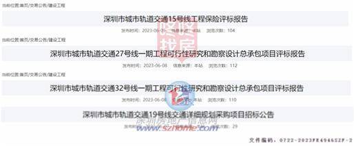 5月份,深圳公共资源交易中心发布了15号线、32号线、27号线、25号线、29号线、19号线工程项目可行性研究和勘察设计总承包及工程勘察设计监理项目等的招标计划公告。