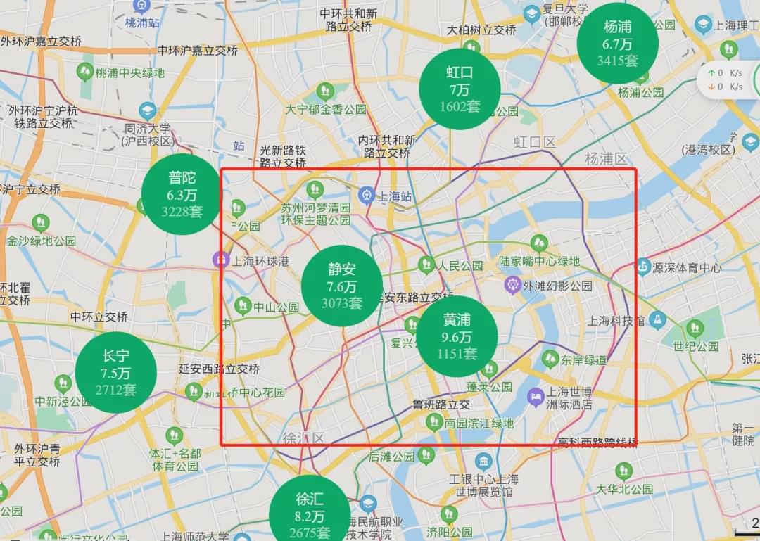 上海地铁4号环线圈内区域,房价水平位居全市前列,高端豪宅林立。