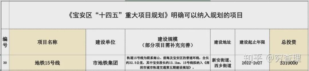 ▷内容来源:《宝安“十四五重大项目规划》,制图:知乎@穷查理