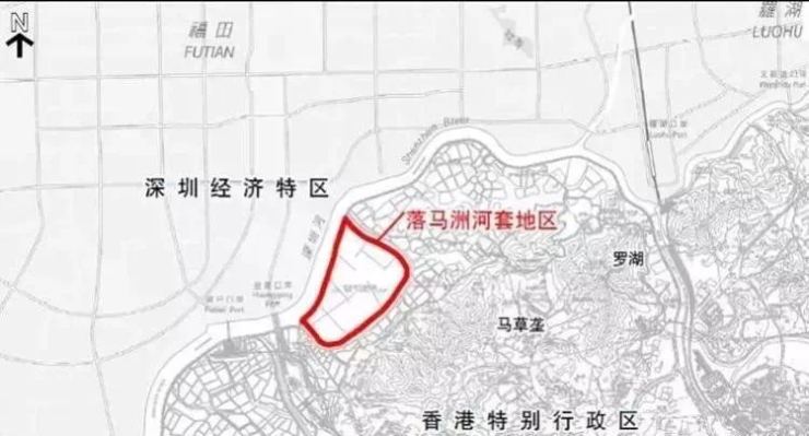 所谓“落马洲河套区”,也被称为“深圳河套地区”。下图就是其示意图:
