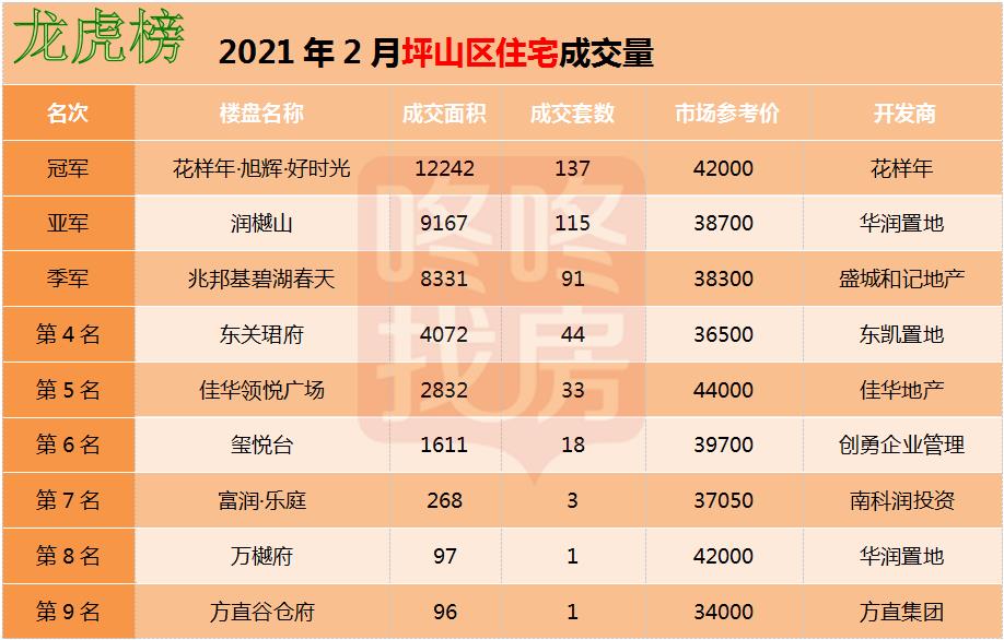 10、2021年2月楼盘成交龙虎榜之坪山区TOP10