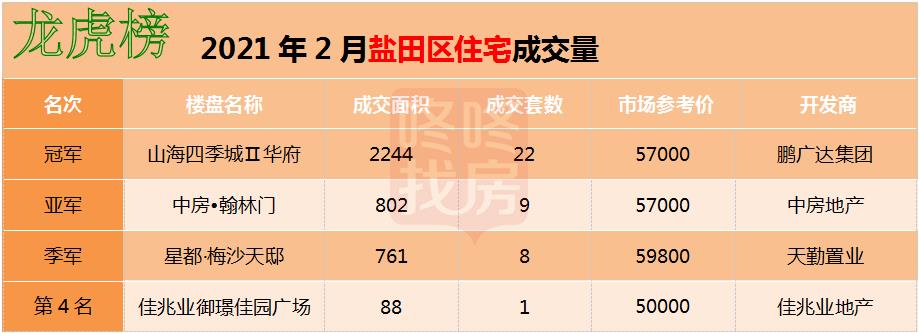 8、2021年2月楼盘成交龙虎榜之盐田区TOP10
