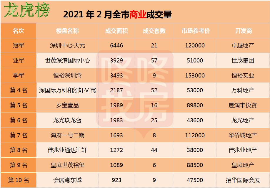 14、2021年2月楼盘成交龙虎榜之商业TOP10