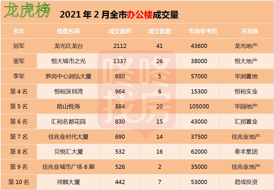15、2021年2月楼盘成交龙虎榜之写字楼TOP10