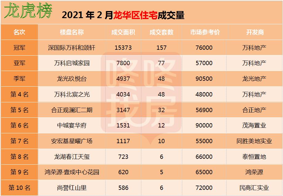 9、2021年2月楼盘成交龙虎榜之龙华区TOP10