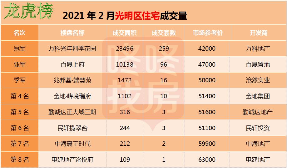 11、2021年2月楼盘成交龙虎榜之光明区TOP10