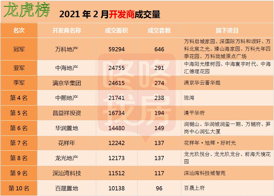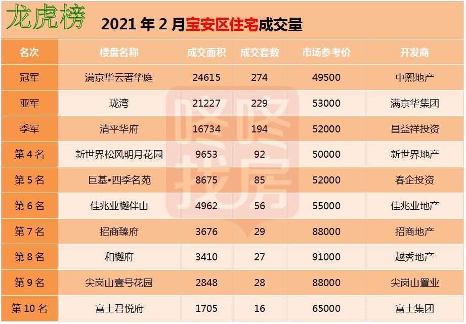 3、2021年2月楼盘成交龙虎榜之宝安区TOP10
