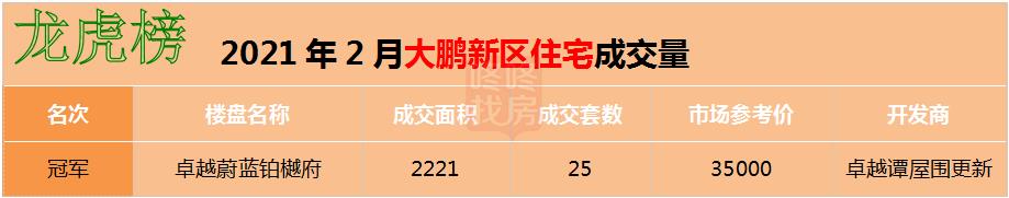 12、2021年2月楼盘成交龙虎榜之大鹏新区TOP10
