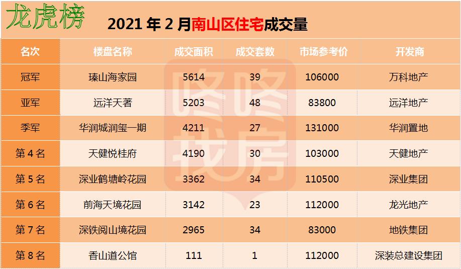 5、2021年2月楼盘成交龙虎榜之南山区TOP10