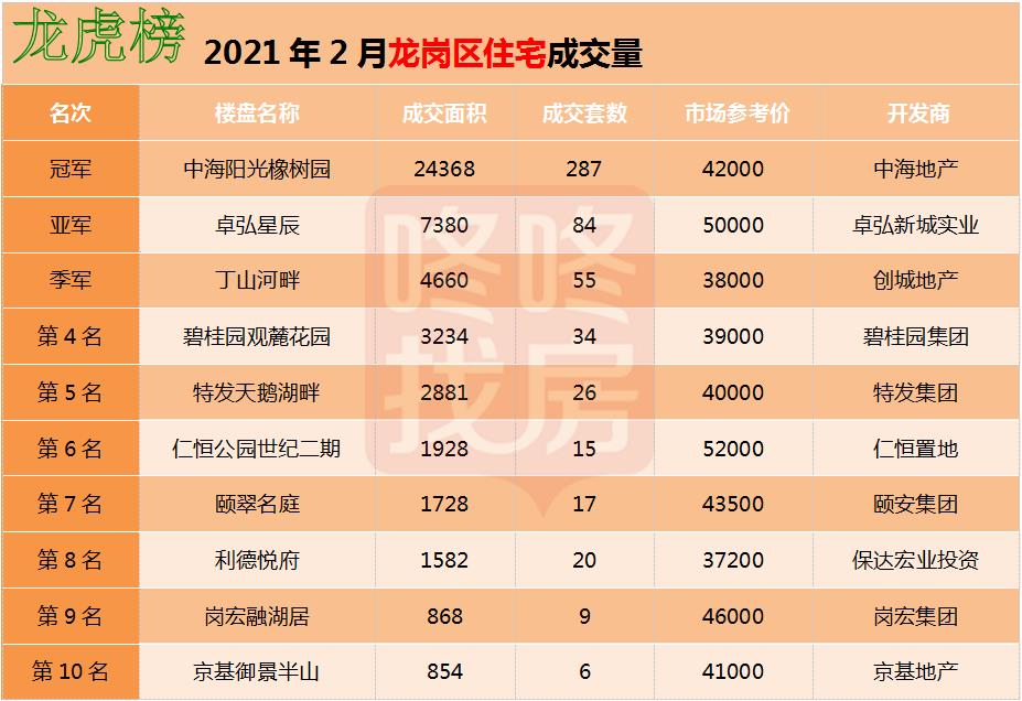 4、2021年2月楼盘成交龙虎榜之龙岗区TOP10