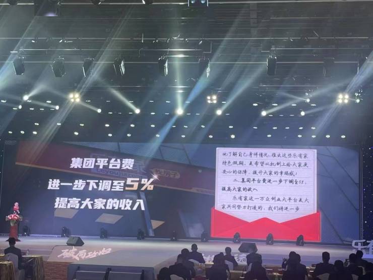 在会上,乐有家集团以董事长家书的方式正式公布,将进一步下调集团平台费至5%,并分级设置城市运营支持费,在提升平台灵活运营度的同时,最大程度让利,进一步提高大家的收入,让大家过的更好。(注:平台费指的是每一笔成交单中按比例扣除的公司运营成本。)
