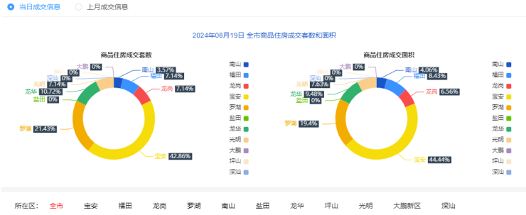 2024年8月19日新房住宅共网签28套。宝安12套;福田2套;龙岗2套;罗湖6套;南山1套;盐田0套;龙华3套;坪山0套;光明2套;大鹏0套;深汕0套。2024年8月19日二手房住宅网签178套。深圳202…