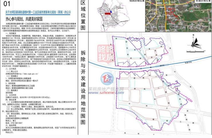 11月19日,光明区城市更新和土地整备局关于新湖街道楼村第一工业区城市更新单元规划(草案)的公示。