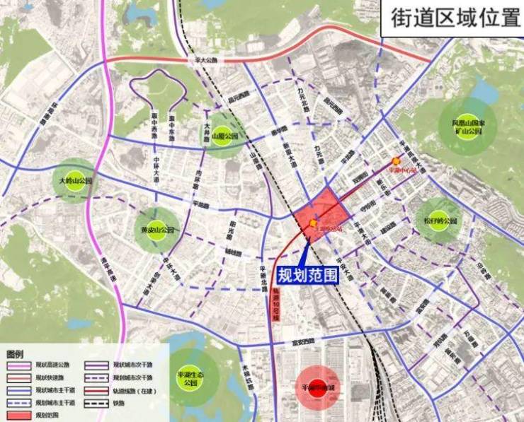 本项目位于龙岗区平湖街道平龙路与平湖大街交汇处西南角,项目东至平湖大道,西临广九线轨道,南至守珍街,北至平龙路。