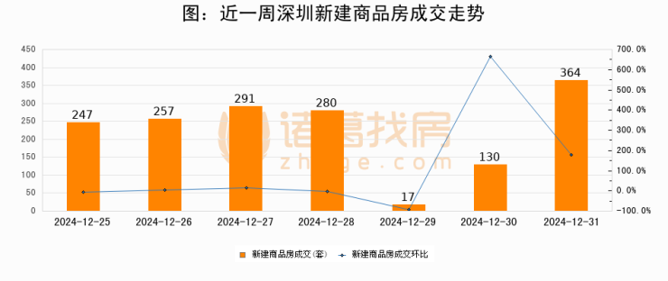 【深圳成交日报】12月31日新房成交364套、二手房324套;涨价房源10套
