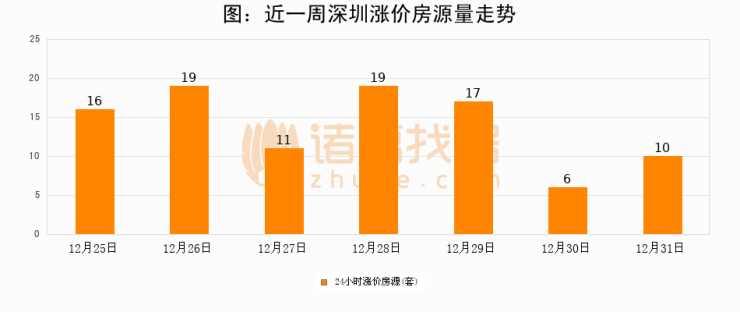 根据诸葛找房数据显示,深圳24小时涨价房源量为10套,较12月30日增加4套,环比上涨66.7%。与此同时,涨价房源占比小幅扩大,业主信心有所提升。