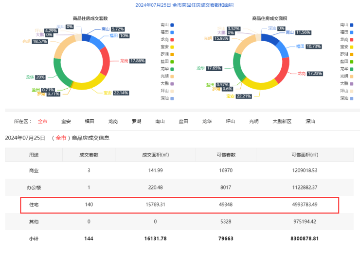 7月25日深圳新房住宅成交140套 二手房住宅成交172套