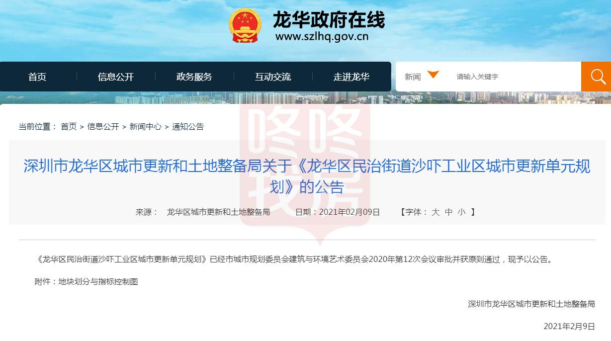 龙华沙吓工业区旧改获批!有写字楼、商业、公园