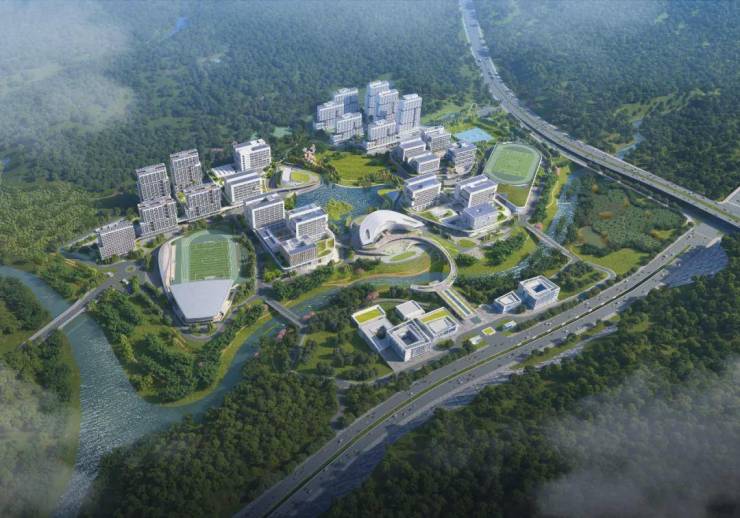 据资料显示,校区规划办学规模为1.5万人。整个校园秉承低影响开发、原生态保护的理念,依托基地内外得天独厚的自然生态本底,以岭南建筑文化中人与自然和谐共生为核心设计理念,以被动优先、主动优化为设计原则,力求打造一所具有岭南风范的绿色低碳校园。