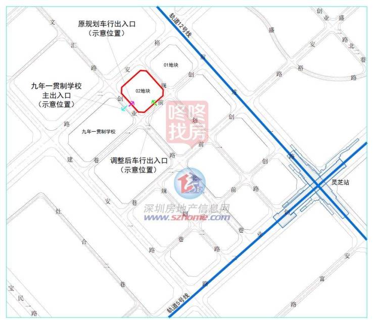 此前,项目02地块曾调整车行出入口,考虑到学校出行安全及减少对车流人流的影响,02地块车行出入口由创业二路北一巷方向调整为创前一巷方向。
