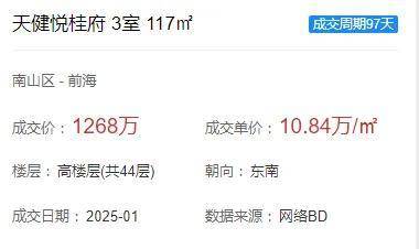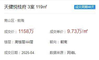 行舟深房数据显示,今年1-4月天健悦桂府成交5套房源,成交单价在9.73-10.84万/㎡不等。