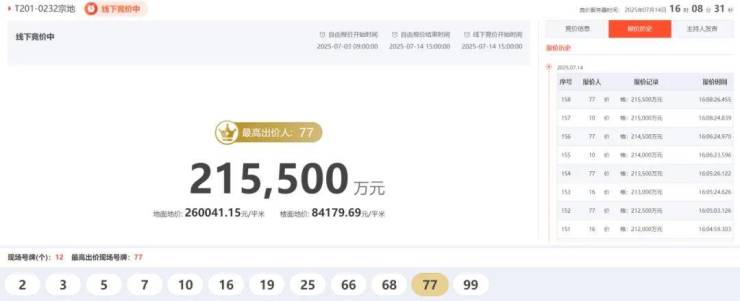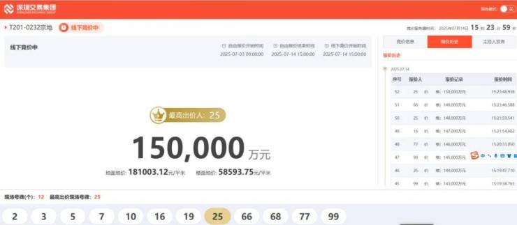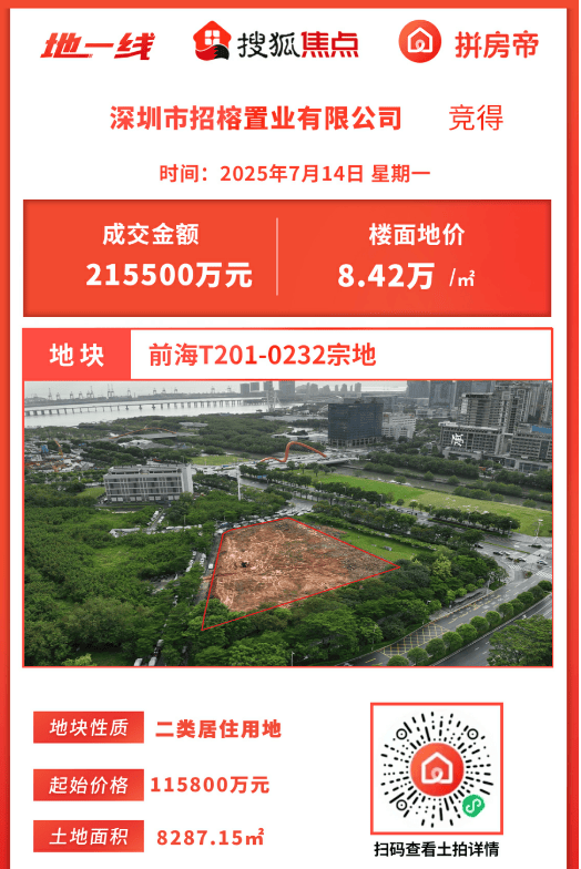 7月14日下午出让的前海T201-0232宗地,刷新了今年深圳土拍市场的热度。