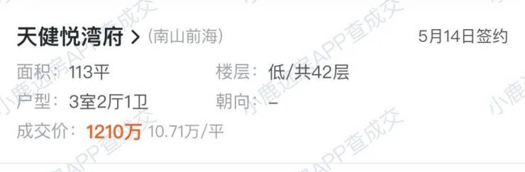 根据小鹿选房数据,天健悦湾府于5月成交一套建面约113㎡的3房,成交单价约10.71万/㎡。