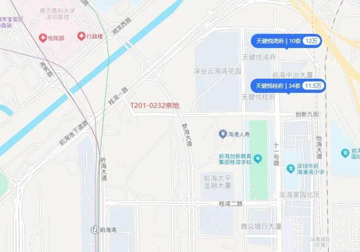 二手市场方面,本次所出让的T201-0232宗地东侧,已建成多个新小区(限价),其中,深业云海湾于2023年入市,开盘均价约9.2万/㎡;更早入市的像天健悦桂府,2021年开盘均价约10.3万/㎡;天健悦湾府2022年开盘均价9.7万/㎡。