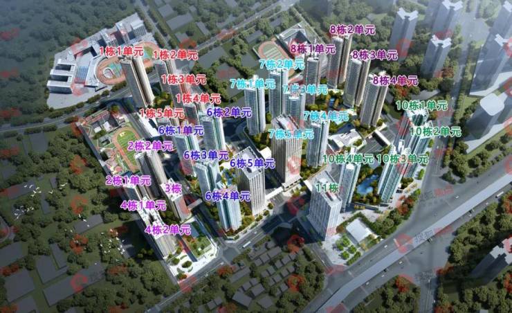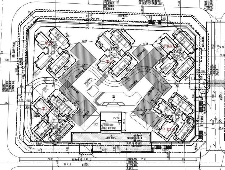 本组团共由5栋住宅组成,其中1栋1单元住宅49F,1栋2-5单元住宅32F,呈围合式布局。