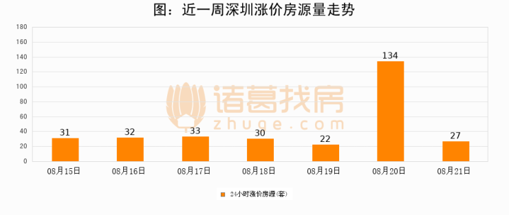 根据诸葛找房数据显示,深圳24小时涨价房源量为27套,较08月20日减少107套,环比下降79.9%。与此同时,涨价房源占比小幅回落,对于购房者来说是一个入市窗口期,购房者可抓住时机入市。