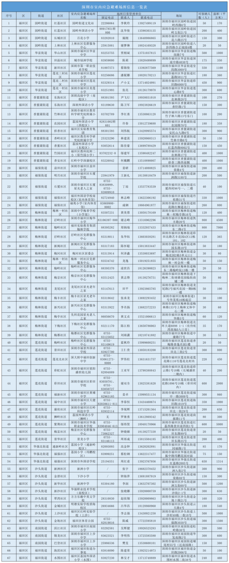 同时,深圳市开放室内应急避难场所
