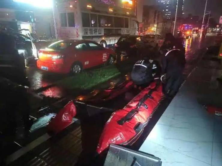 深圳公益救援队水上搜救队接到求助后立即出动,配合街道进行转移,成功救出所有群众。