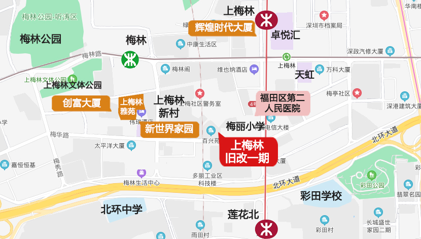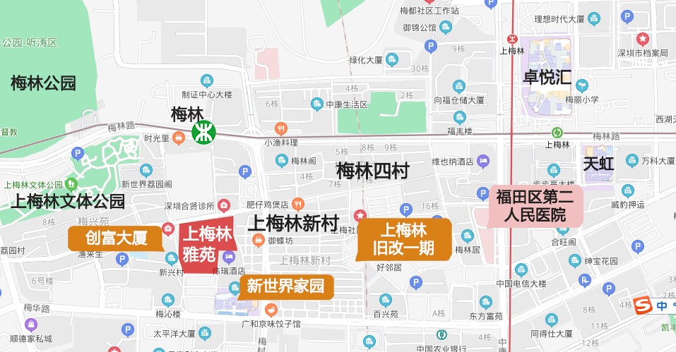 而京基操刀的二期项目在梅华路北侧,上梅林新村旁,原为上梅林祠堂村。