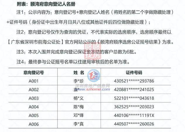 11月4日,前海颐湾府尾盘登记人名册公示,共6人进行意向登记;项目将于11月5日10:00在前海公证处摇号,本文将进行直播,敬请关注。