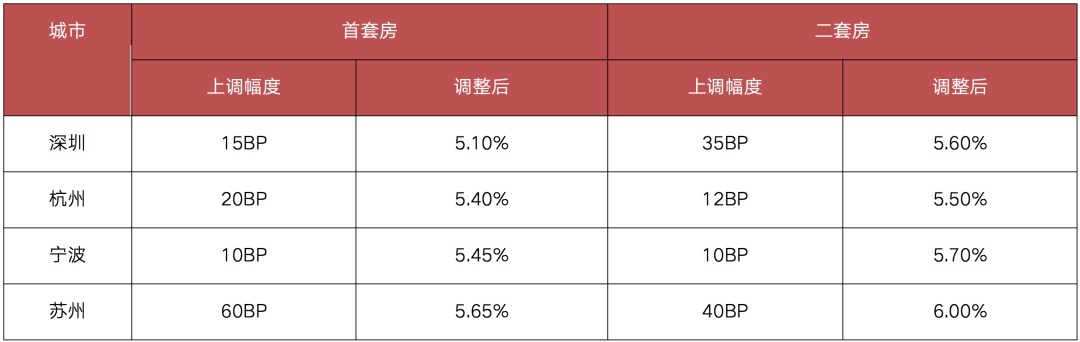 表:深圳、杭州、宁波、苏州等首套房、二套房贷款利率调整情况