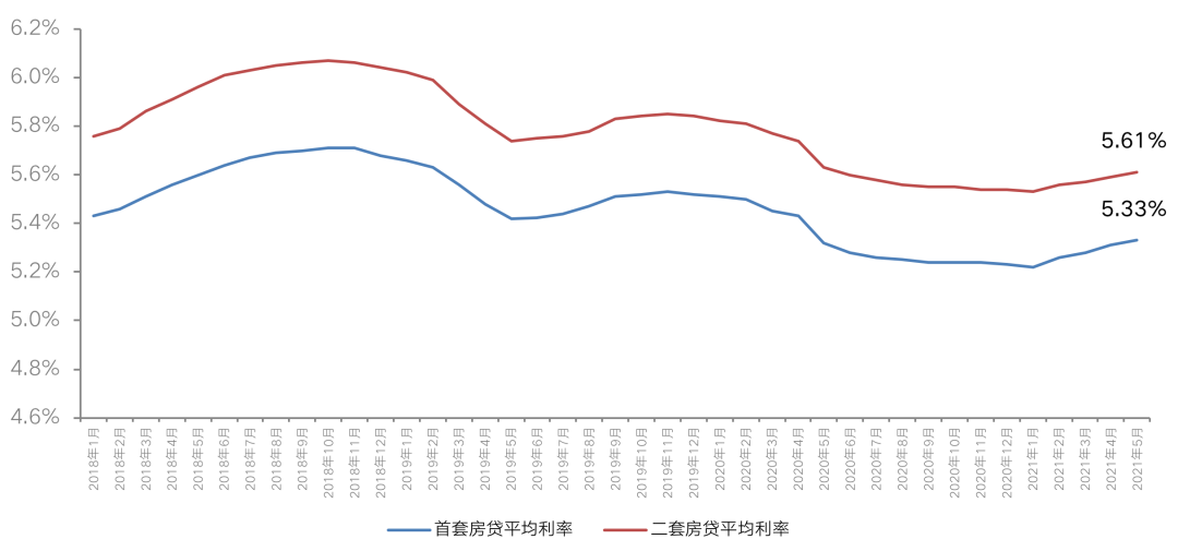 5月,全国首套房贷款平均利率5.33%,环比再上涨2BP,较2020年底上涨11BP;二套房贷款平均利率5.61%,环比上涨2BP,较2020年底上涨8BP。