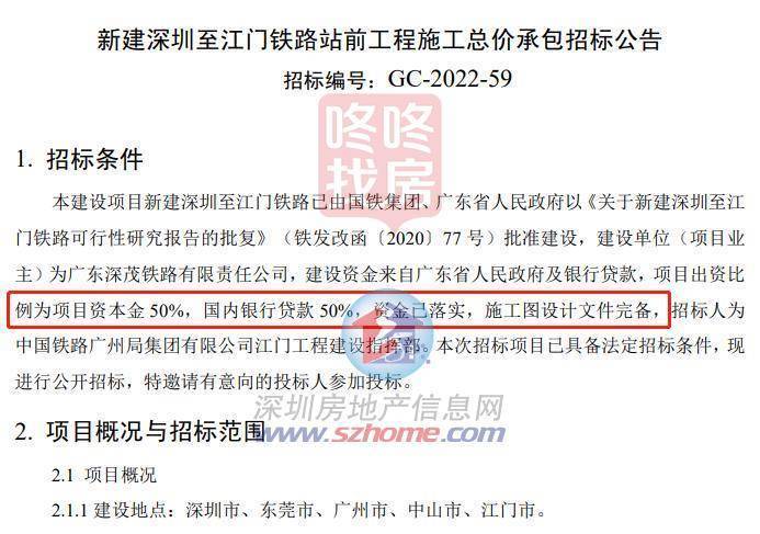近日,广州公共资源交易中心发布了2则关于新建深圳至江门铁路的招标公告,一则为项目施工监理招标,一则为项目站前工程施工总价承包招标。
