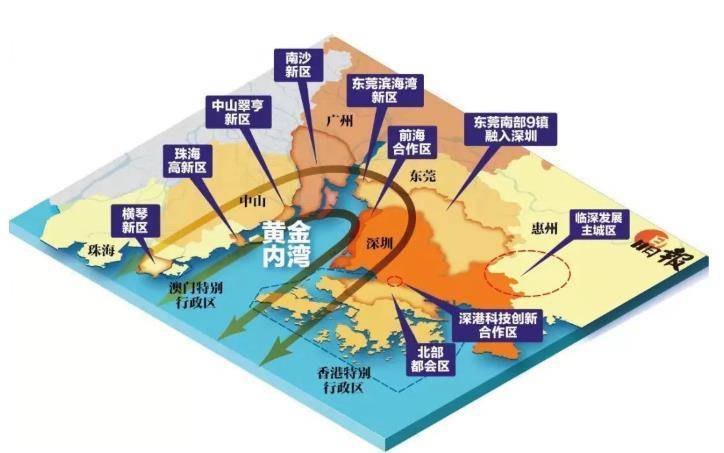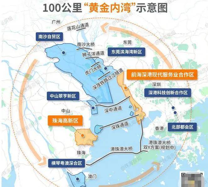今年,广东省第十三次党代会提出,着力打造环珠江口100公里“黄金内湾”,带动广州、深圳、珠江口西岸三大都市圈协同发展、聚势腾飞。(黄金内湾由深圳前海、东莞滨海湾新区、广州南沙、中山翠亨新区、珠海横琴共同组成)。