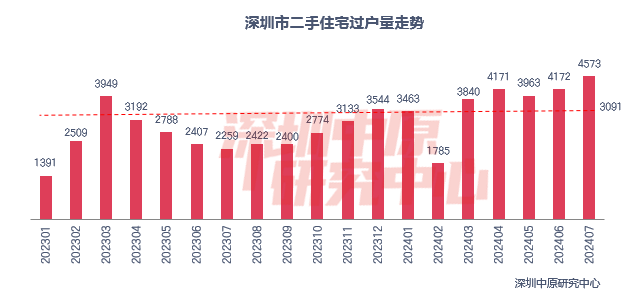 根据深圳中原研究中心数据统计,7月深圳二手住宅过户4573套,为近39个月最高,套数环比增长9.6%,同比增长102.4%。
