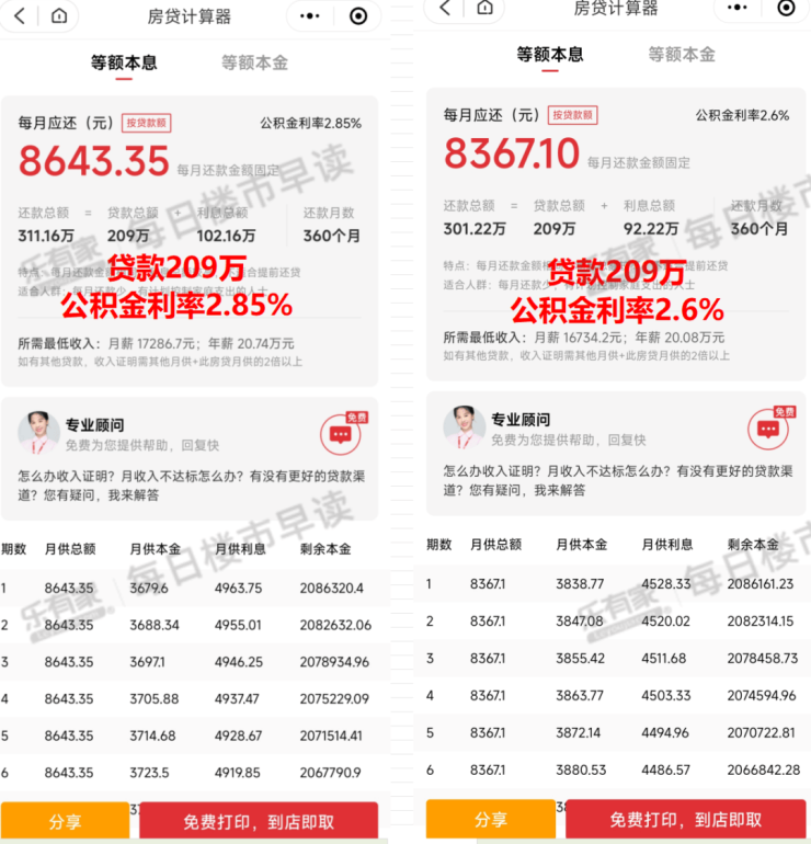 若以首套二孩,纯公积金贷款209万,等额本息还款方式计算,新政后可累计节省利息9.94万!