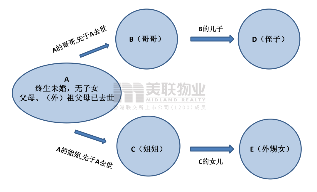 提问:A去世后,其遗留的房产能否由A兄弟姐妹的子女,侄子D和外甥女E继承呢?