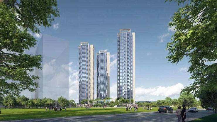 从现阶段公示的效果图来看,项目主体除独立占地的9班幼儿园外,由三栋超高层住宅塔楼及沿街商业裙楼构成。