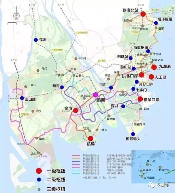 珠海市住规建局发布《珠海市综合交通枢纽布局规划及重点枢纽交通详细规划》批前公告显示:未来规划7条轨道交通、4条城轨线路。