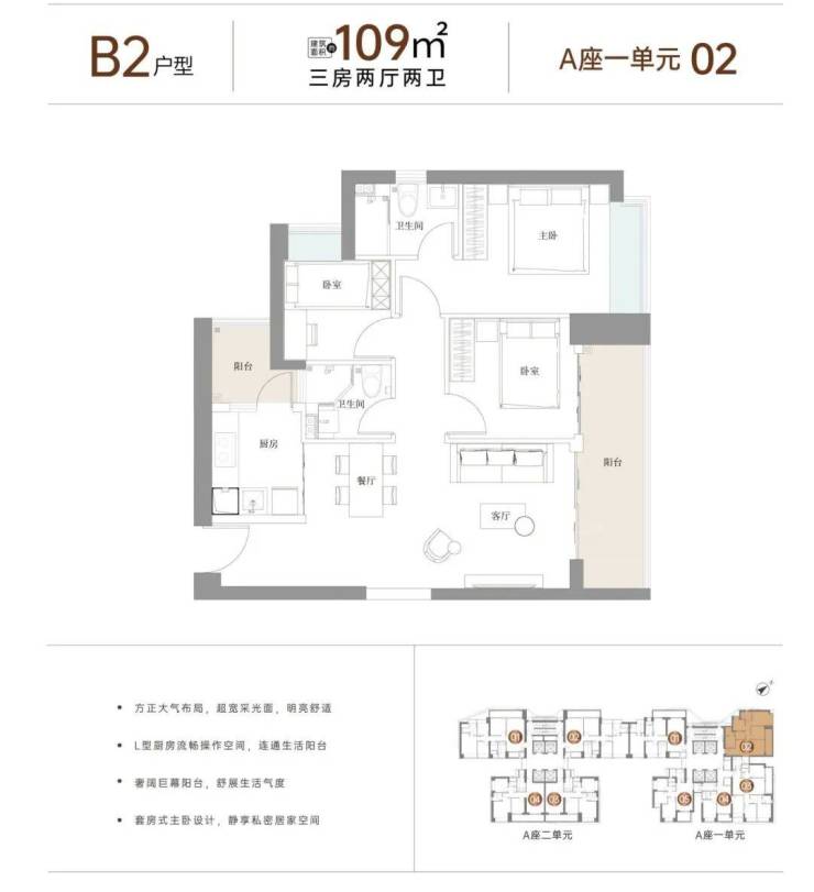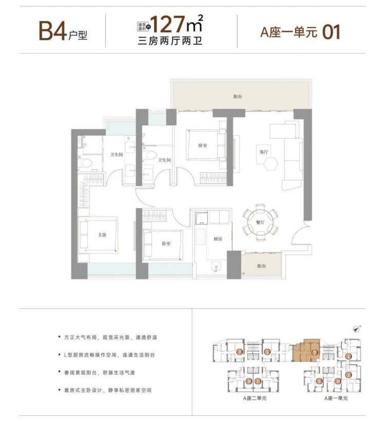 凌云华府主推户型为建面约80-144㎡产品,其中3房为主力户型,有建面约109㎡、116㎡、125㎡、127㎡可选,此外,也有上车小户80㎡2房、95㎡3房1卫单位,及见面约144㎡的改善户型。