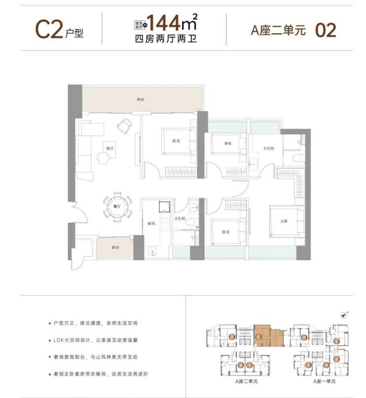 3、部分户型或存在对视的可能,如建面约144㎡的大户型,生活阳台部分或与125㎡户型的卫生巾存在对视的可能,也影响两个功能空间的采光;