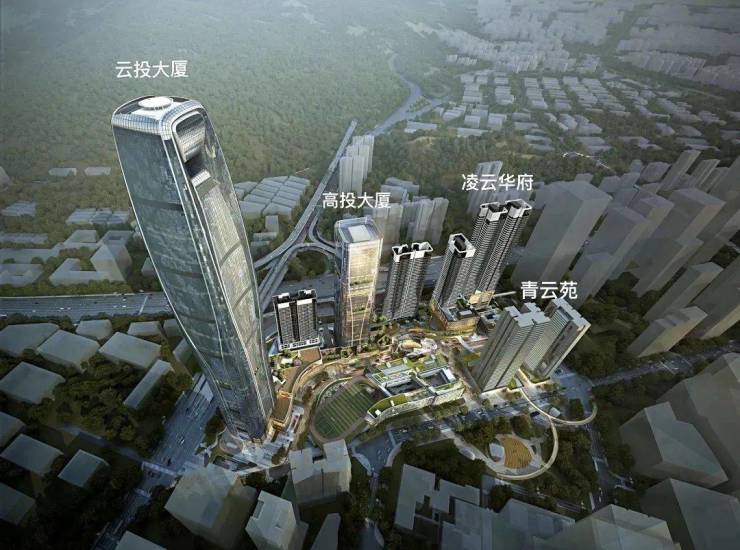 整个项目占地面积约4万㎡,规划总建面约63.4万㎡,整体由1栋81层的商务写字楼(云投大厦)、1栋48层的研发办公楼(高投大厦研发办公楼)、1栋36层的商务公寓、1栋60层的云端住宅(凌云华府),1栋保障性住房(青云苑),2栋返迁房,另配建有学校、幼儿园。